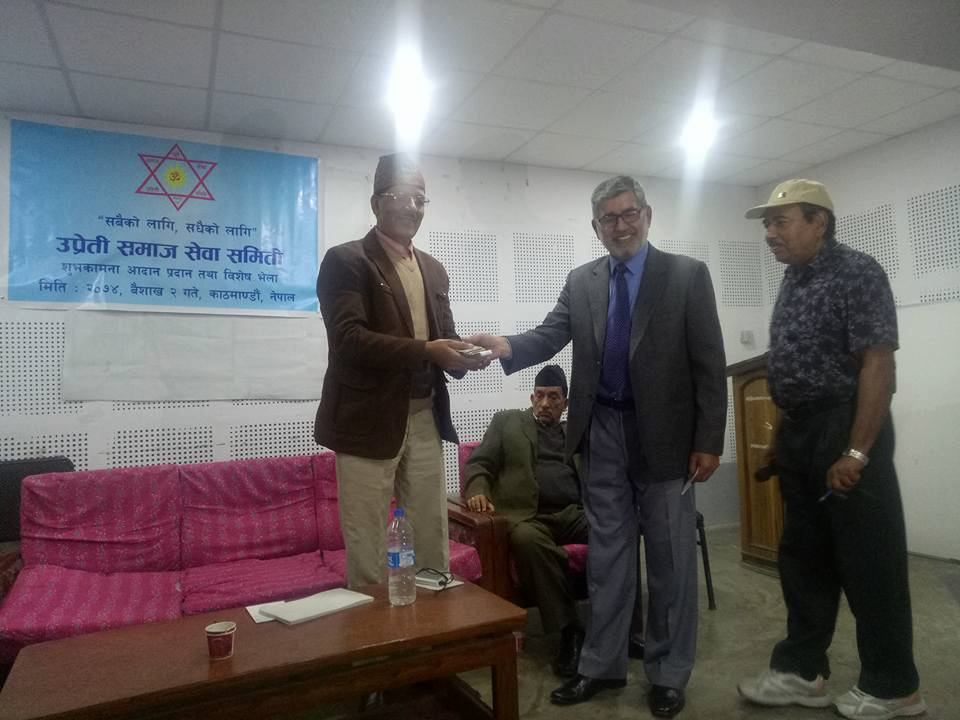 उप्रेती समाजसेवा समितिले समितिका सल्लाहकार एवं नेपाल सरकारका पूर्व सचिव डा. वेदप्रकाश उप्रेतीज्यूलाई उहाँले समाजसेवा र राष्ट्र प्रति पुर्याउनु...
